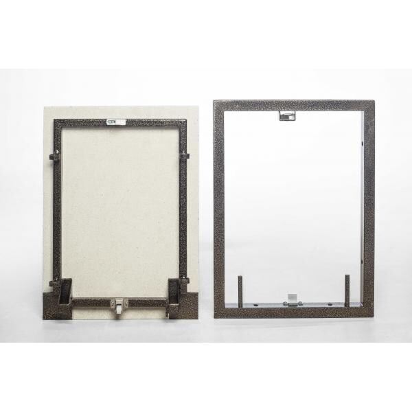 Люки виготовлені із спеціального сталевого профілю та покриті порошковою емаллю. Дверцята люка облицьовані магнізітом.